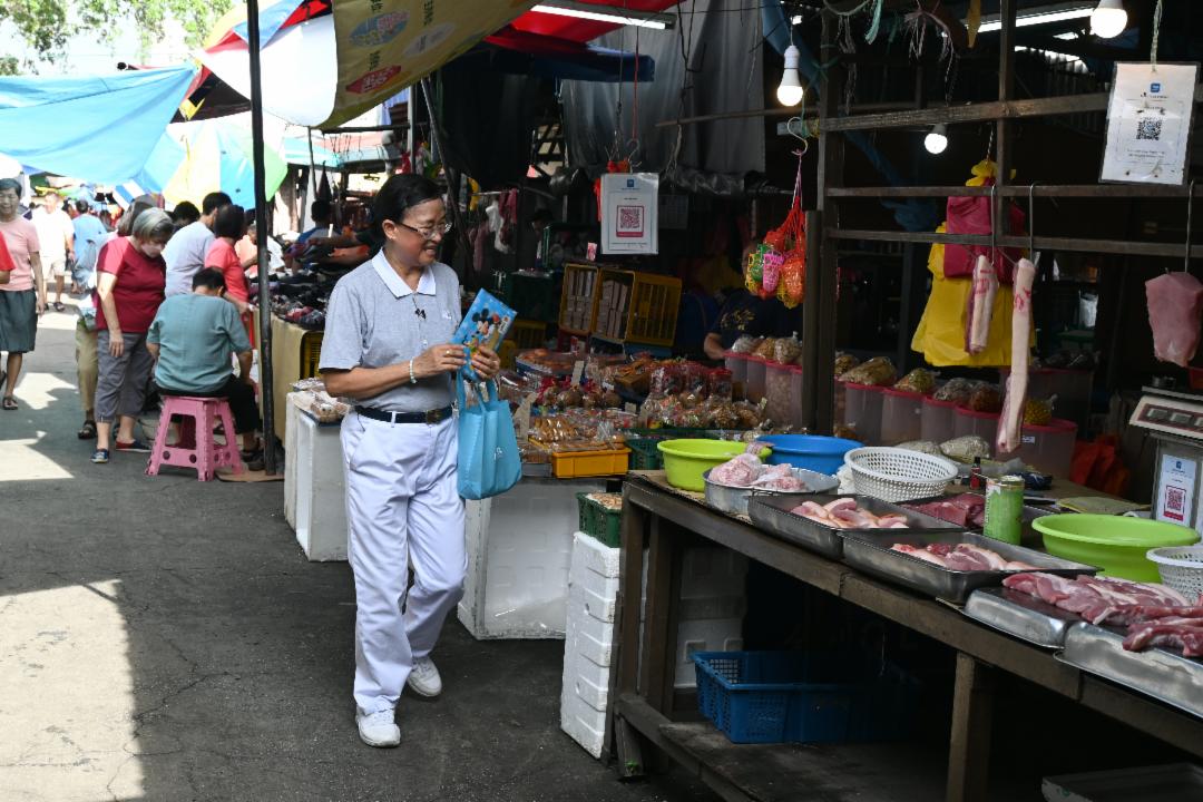 走在早市的路上,拎着一个小小环保袋,挨家挨户去每一个摊位交付善款收据,顺便收善款。交善款时,王秀勤会邀约会员参加慈济活动,分享静思堂各项活动。会员们看她慈济做得比做生意开心,开始发觉她不同了。
