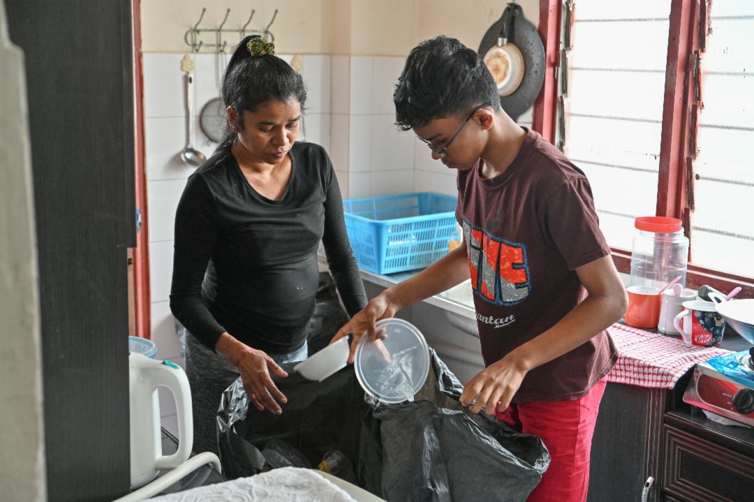 罗伯特把在环保站学习到的知识跟妈妈分享,妈妈也从工作的诊所把资源带回家,母子俩响应环保。【摄影:颜伟明】