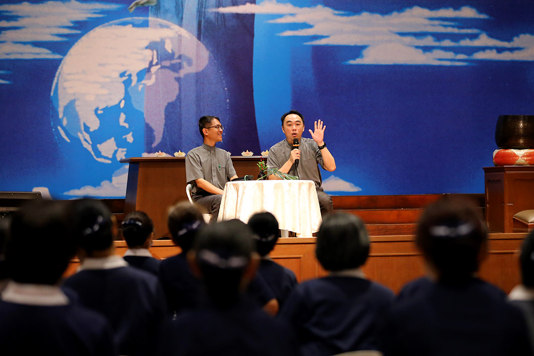 来自马来西亚的梁贵胜(思谕)与陈祖淞(思担),早年于大专院校因缘接触慈济,如今已受证为清修士。梁贵胜目前承担台湾宗教处海外事务室亚太会务组,陈祖淞则在执行长办公室全球合作暨青年发展室,各司其职,为志业尽心力。