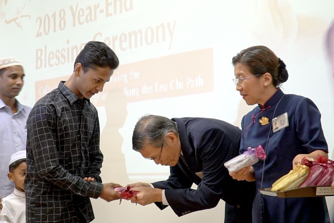 “大家下午好,欢迎各位出席今天的岁末祝福。”两位司仪穆鲁甘(K. Murugan A/L Krishnan)与日瓦缇(Revathi A/P Ponnusamy)全程分别用淡米尔语与马来语向现场的志工与会众解说,而岁末祝福里所播放的影带亦已配上英文字幕,务求大家都能了解。由于现场有众多信仰回教的难民学校师生,志工亦邀约宗教师在节目开始之时,带领现场的穆斯林一同祈祷。