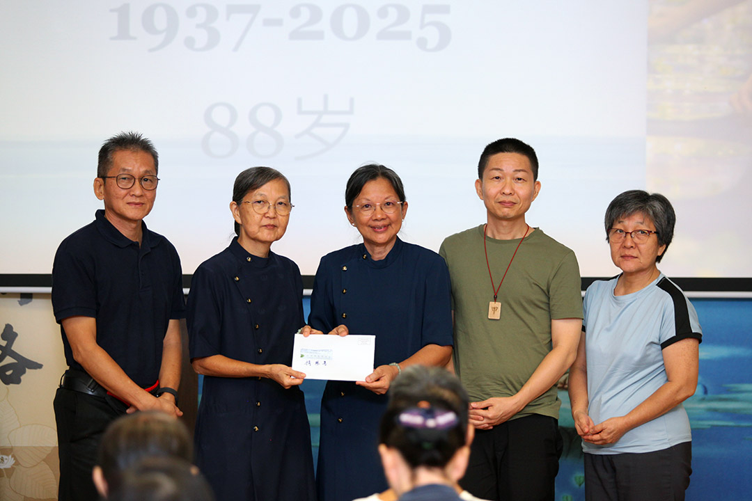 出席追思会的大德李志兴分享,“我是在2000年就认识叶瑞芳菩萨的,那时大家常常一起练气功。记得有一次,我们一群人组团到关丹林明山看日出,她是团队里最年长的一位,山路陡峭,她走得有点吃力,但我一路鼓励她,坚持一步一步往上走。最后,她真的成功登顶,迎来美丽的日出。那时,我们都深深感受到她有一颗年轻的心,有毅力的心和不服输的精神。如今,菩萨圆满心愿,成为无语良师,继续以她的身心来教育世人。她的勇毅与慈心,永远值得我们赞叹与学习。”