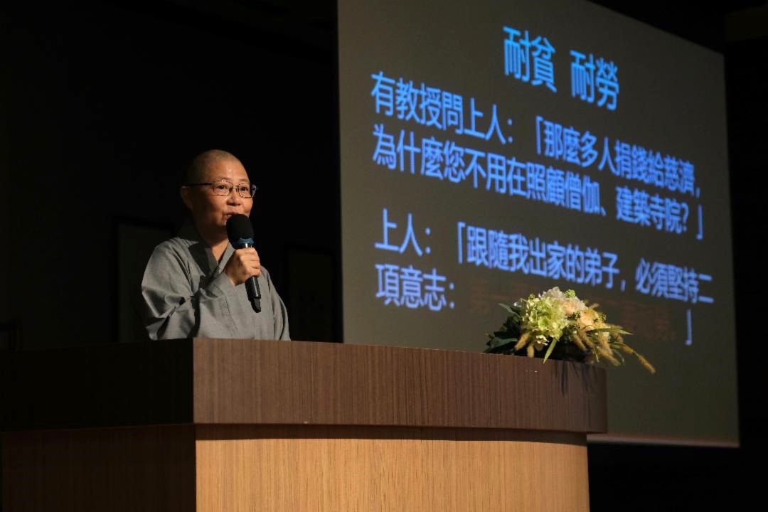 德耒曼师父提到慈济的起点——竹筒岁月。每天五毛钱、再苦也要救人的心念,成就今日的全球慈济。【摄影:陈德铭】