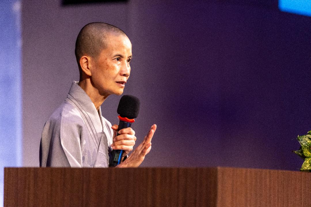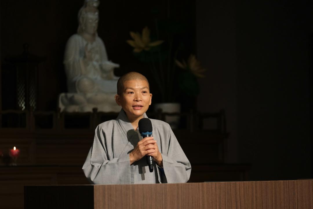 她表示师父们提到:克勤、克俭、克难是修行,让她明白修行不是口号,而是每天的行为与选择;她觉得必须先从自己的心念做起,学习宽恕他人、宽恕自己。