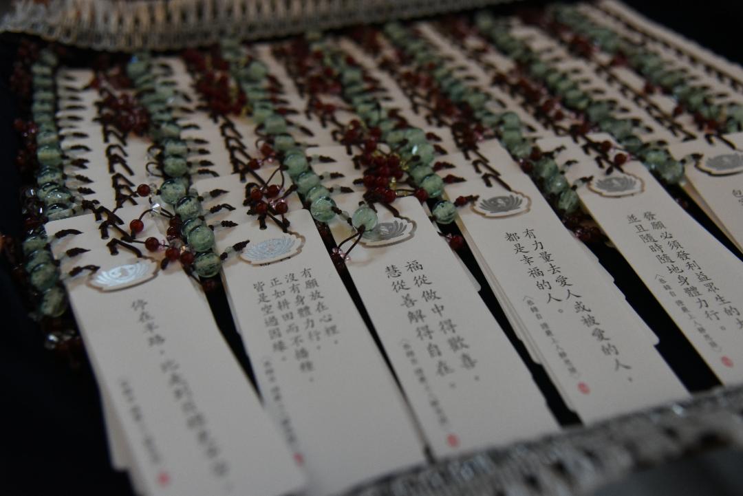 “有爱无碍”环节结束后,师父们以静思语书签跟大家结一分欢喜缘,传递祝福。 【摄影:蔡梦萍】
