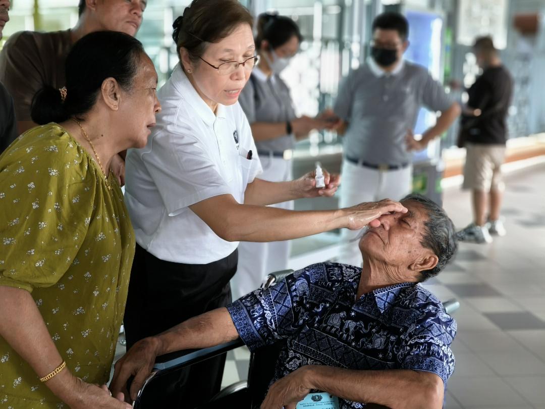 七十七岁的尤金阿秋近两年视力退化,行动困难。他与家人从林梦途经文莱前往美里接受手术,路途遥远却难掩喜悦。抵达后,医疗团队与志工细心安排、耐心说明,让他逐渐安心:“医生很好,大家服务也很好,让人很安心。”对阿秋而言,手术不只是重获视力,更是重新看见生活的开始。