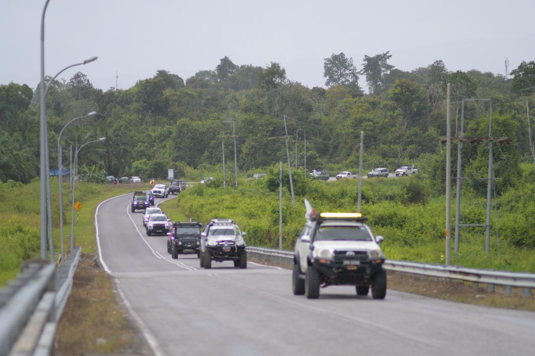 逾七十位来自砂拉越各地的四轮驱动车俱乐部成员,超过五十辆车辆浩荡进入砂拉越内陆村庄进行义诊。【摄影者:陈佩莉】