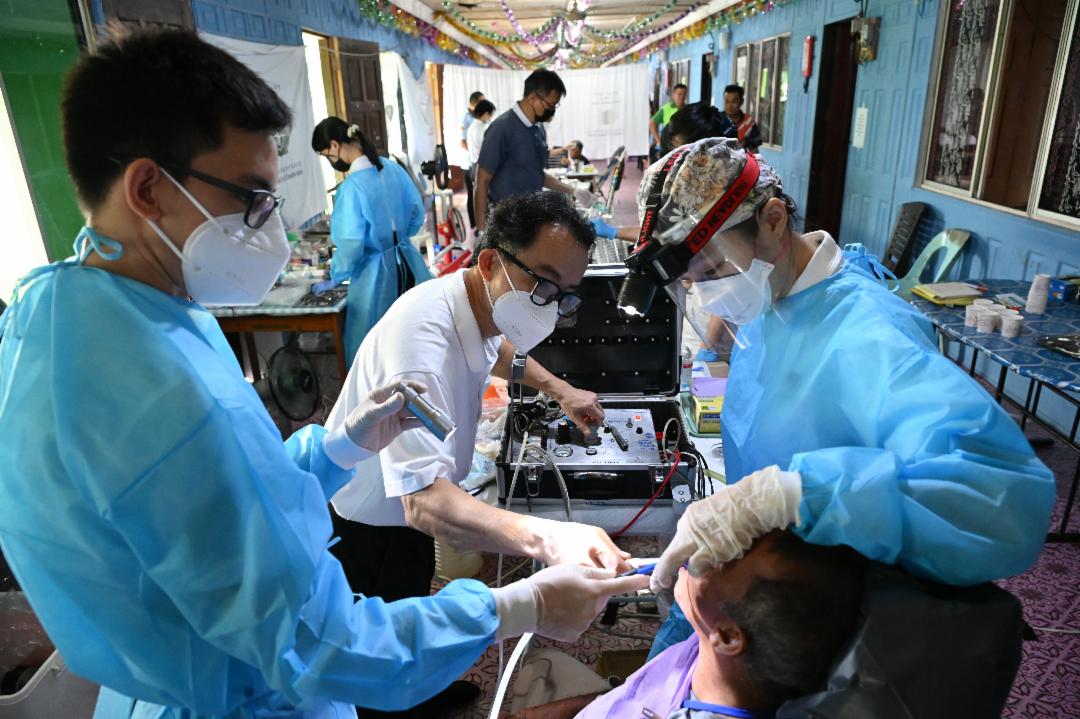 车队成员不仅仅是驾车载送医护与志工入村,当中有不少成员自告奋勇在各岗位协助,把握机会多付出;蔡常龙(坐者)就是其一,今年首次在牙科协助清洗诊具及消毒,直言学习良多。【摄影者:陈佩莉】