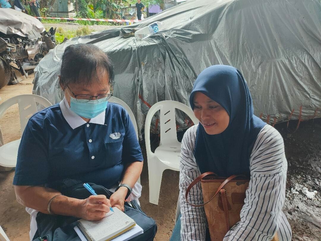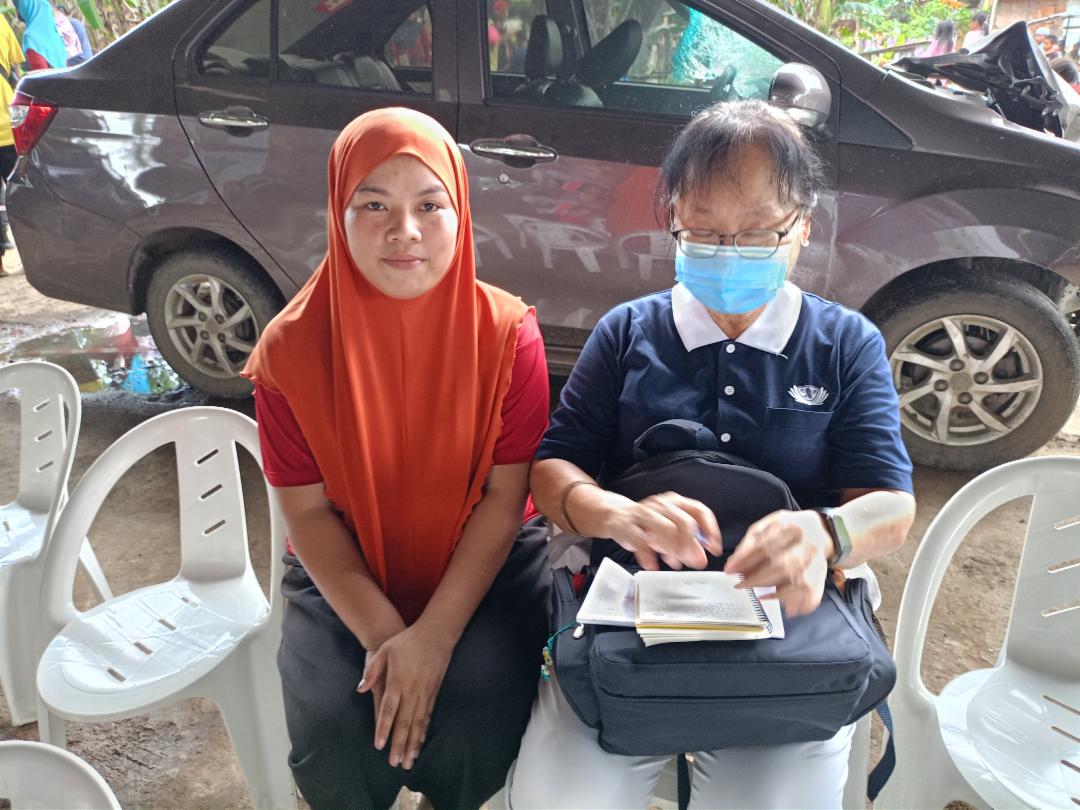 不仅如此,她认为这样的义诊除了可获得专业医师的看诊及关怀,还可取得免费的药物。平时若是生病得到私人诊所,不只费用庞大,还要负担交通费。当天的义诊见了医生,发现她的劲项有类似肿瘤的东西,按压有疼痛的感觉,医生建议她必须到医院再做详细检查并跟进。虽然她非常担心但感恩这次的义诊, 让她早日发现问题。陪同莉娜前来的妈妈,奴依荙( Nurhidah )也一起问诊,让她感到无比开心,因为义诊让她们一家人减轻医疗费用和病痛。