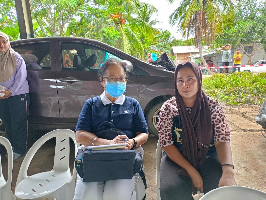 三十七岁的丝维娜(Shirwina) ,是甘榜马来尤的村民,育有三个分别为十九、十七和十五岁的孩子。一个星期前发觉乳房有肿瘤,就到私人诊所求医,医生建议要扫描。可是经费不足,就耽搁下来。丝维娜曾于2019年遭遇胸部肿痛、发烧的情况。当时有去寻求土医疗法,吃了药有好转。今天获悉有义诊,特地再过来寻求专业医生的意见,医生讲解过后最后还是建议她去大医院做扫描才能确定病情。