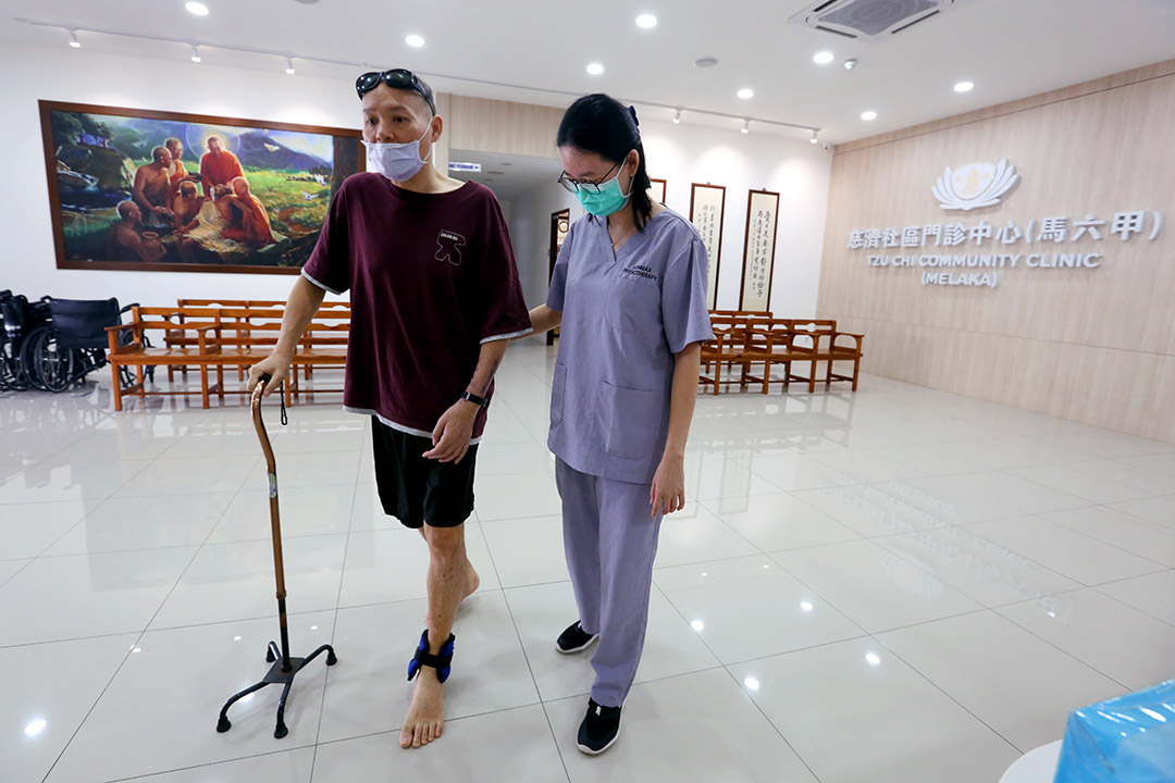 在担忧与奔走中,王绥圆四处查资料、询问方法,最终找到了慈济。得知马六甲慈济社区门诊中心提供物理治疗与中医服务给予低收入家庭,而中风后失去经济来源、单身的王绥文符合资格,她立刻联络并预约治疗。