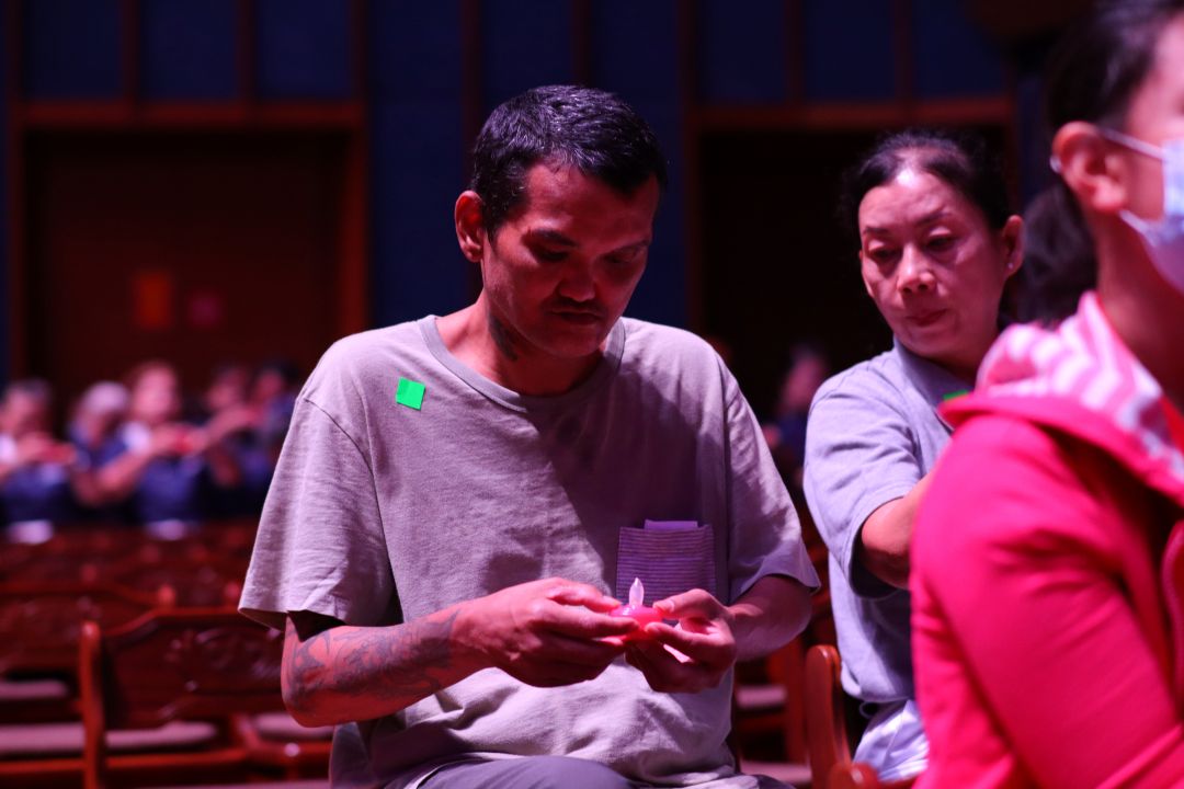 在欢喜声渐渐沉淀后,全场回归宁静,众人合十祈祷,为新的一年许下心愿。活动中,每一位照顾户也都领到一份有缘卡,内有静思语,它宛如新春的祝福与叮咛,期盼能在他们心中种下一颗善念的种子。