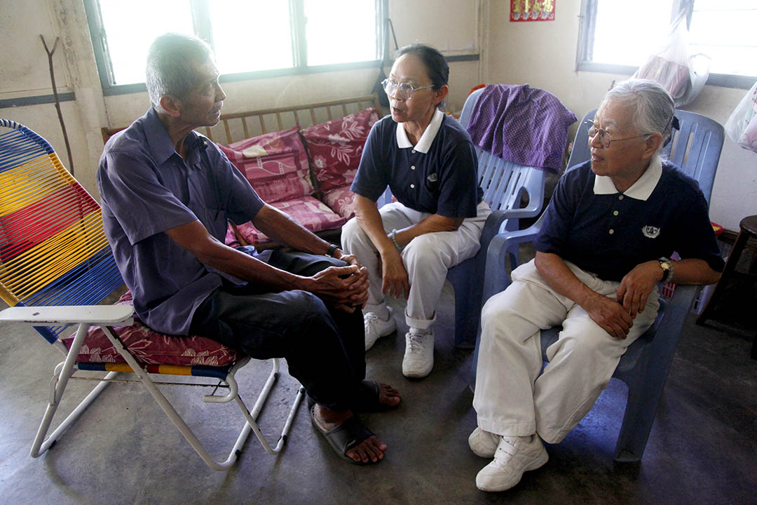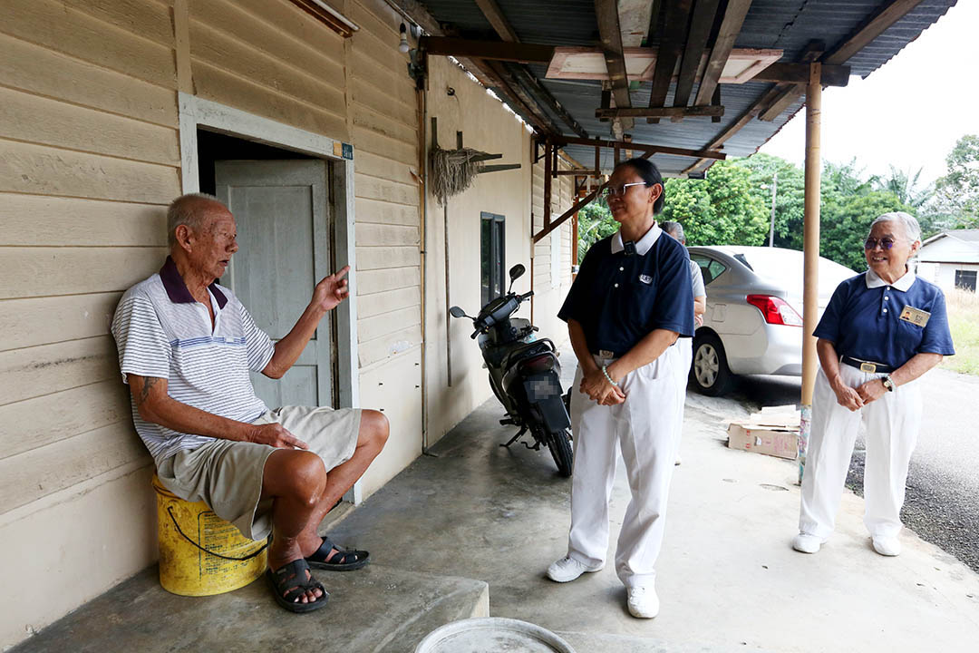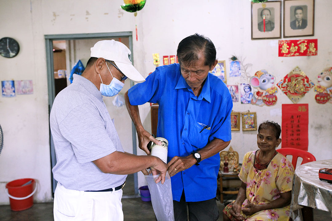 另一位住在巴登马六甲安乐新村的傅瑞方,他和印裔妻子相依,膝下无子女,2023年太太往生后独居至今。夫妻俩本是胶工,健康一直不佳,像傅瑞方早年遭受大肠扭结受阻塞而切除部分大肠,之后又因肺部细菌感染昏迷,2014年中风无法工作。他的妻子因手脚关节疼痛,也无法再割胶。打从2012年开始,他们每月仰赖慈济援助生活费,及妻子领取的社会福利金维持生活。当妻子病重卧床,志工送来病床和轮椅,更增补患者所需的营养奶粉,陪伴直到妻子安详过世。