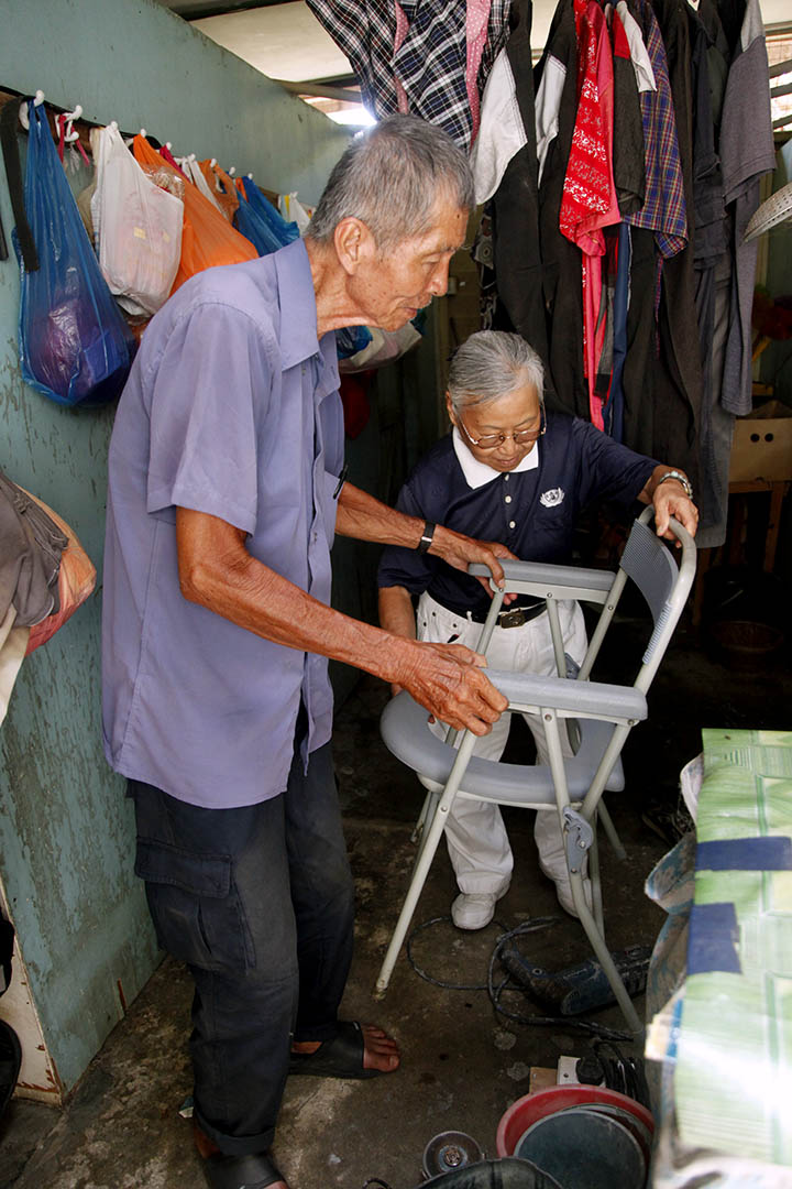 志工陈幼涓说:“他的太太患病时,我们已经带来便椅,但是傅瑞方年纪渐长,中风后行动非常缓慢,洗澡时面对光溜溜的墙壁没有扶手支撑很危险,又或扛着便椅到厕所大解,有时来不及,直接排泄在尿片,让他很不舒服。因此得知有安装扶手的机会,我们马上动念,将蹲厕改为坐厕,再安装扶手。”