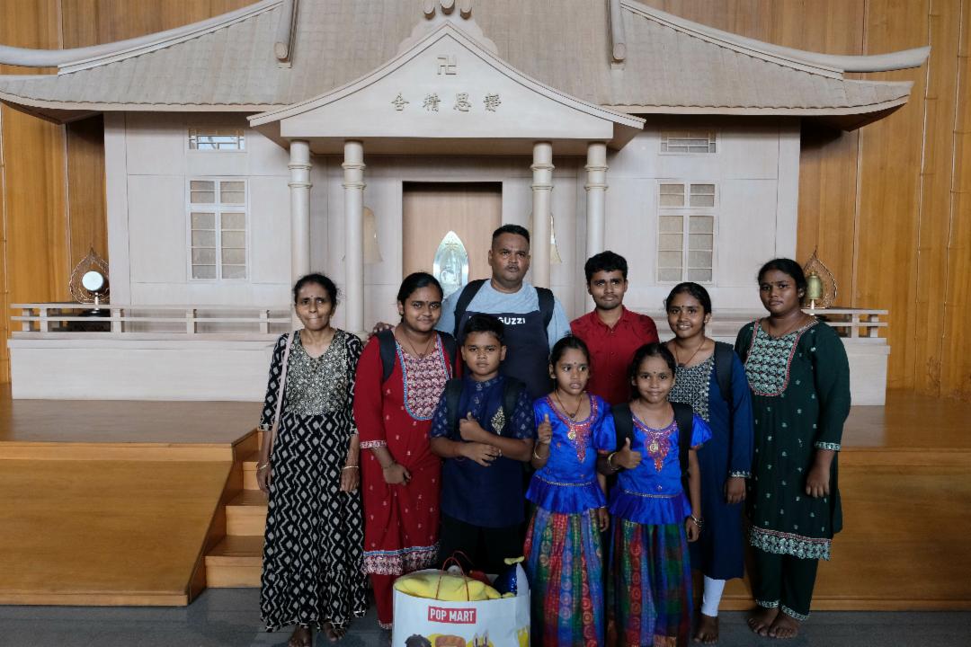 慈济莎阿南照顾户迦雅巴兰(Jaya Balan A/L Rajagopal)和太太带着七名孩子,跟随社区民众来到静思堂。他衷心感激志工特别准备巴士,因为一家九口一起出门的机会实属难得。“我们无法一家人挤进一辆车,全家一起出门的车费也是负担。所以,倘若出门,孩子们只能以轮流的方式参与。”