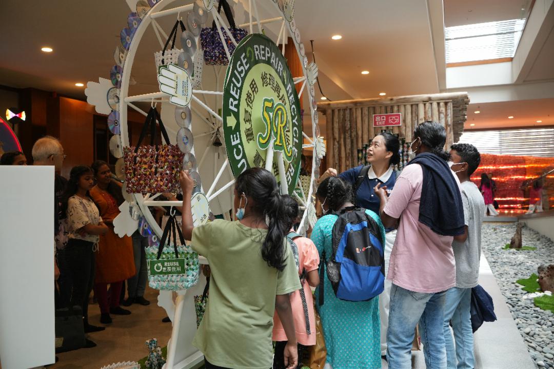 “没想到这些瓶子都能再利用,变成艺术品!”恩格拉笑着说。她的孙女塔拉妮(Tharani A/P Sivanatha Sivanathan)看完“环保十指口诀”展区后,深感要保护地球刻不容缓,我们应该要减少砍伐树木,也立志“从自己开始,不乱丢垃圾、才能救地球。”