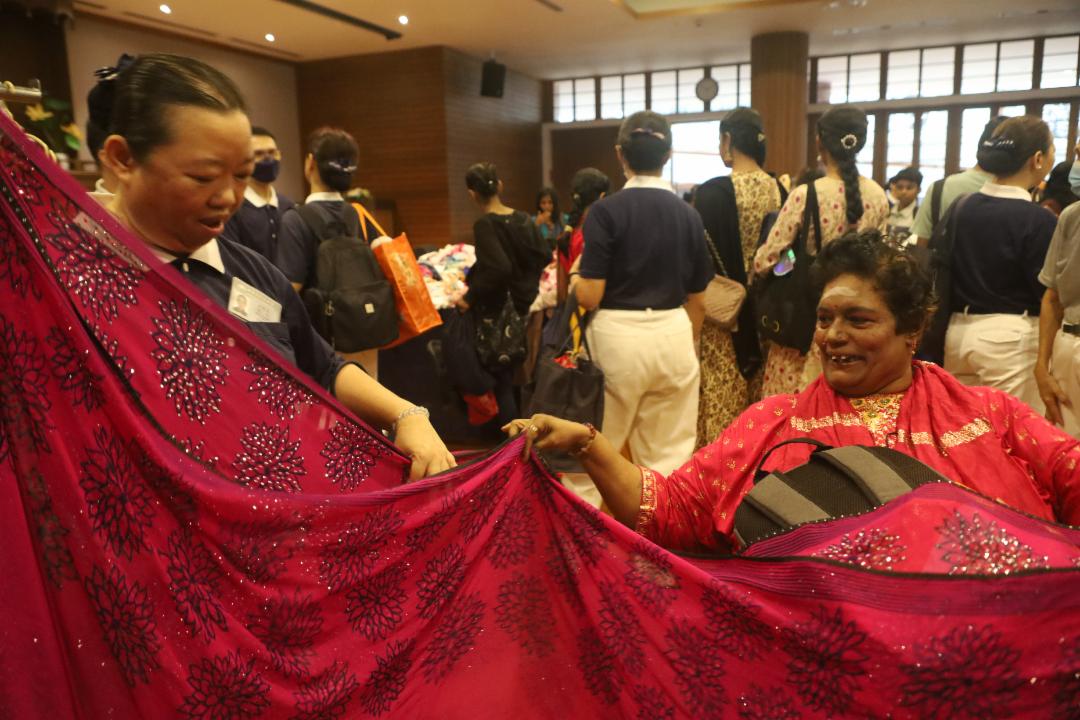 这天,纳瓦玛尼穿着红色旁遮普服装,神采奕奕地说:“过去的屠妖节都很简单,今年能来这里庆祝,真的好开心。”在惜福区挑衣服时,她笑着展示“战利品”:平时我根本买不起,现在可以挑到几件漂亮衣服,像是在逛街一样幸福!”