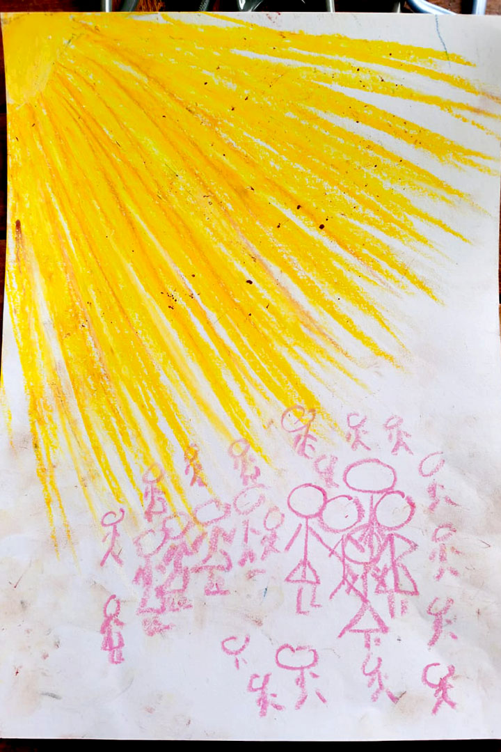 监狱关怀志工带动艺术治疗课程,图为受刑人所画,表达心中的情绪。【摄影:刘珌娟】