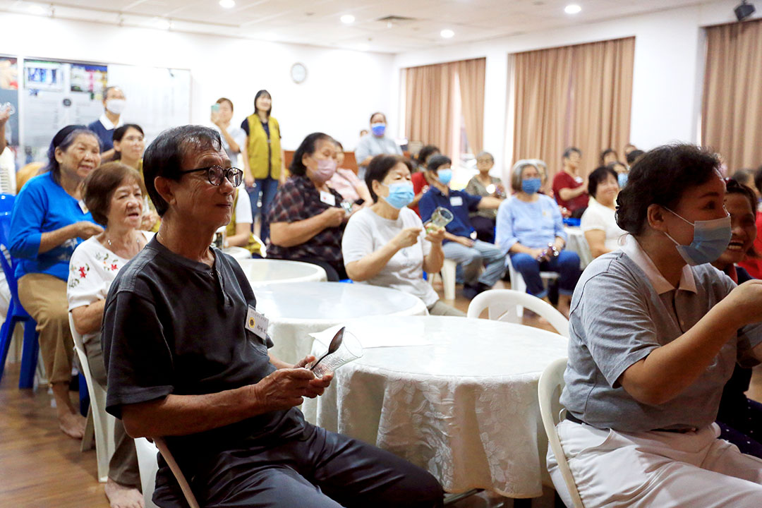 今日,随着愉悦的“Rasa Sayang”歌曲,长者们愉悦地使用不同的乐器配合节奏,一组敲打着乐器,一组摇着铃铛,另一组敲着玻璃杯,以及一组高声快乐地唱着,结业典礼在热闹的音乐声中掀开序幕。