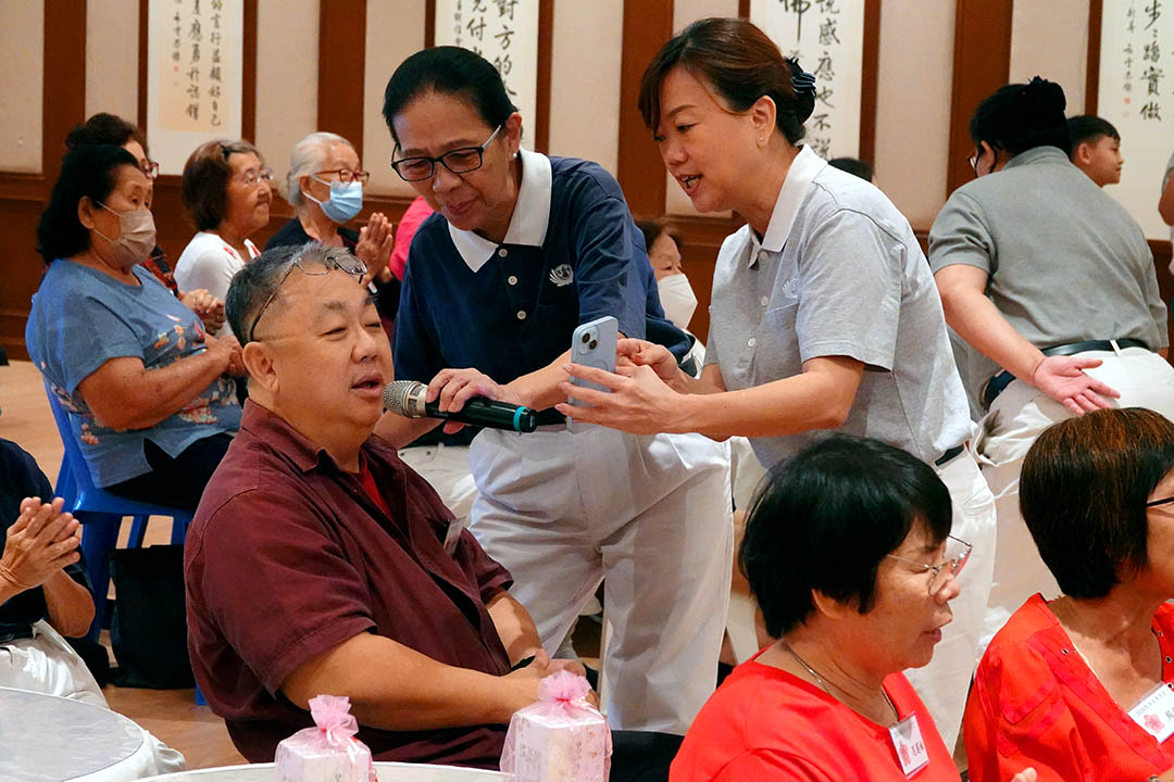 李育玲的朋友禤瑞雯和郑凤珠两人每一堂课都陪伴邓月丽,见证她的改变,替她感到开心之外,两人也因陪伴上课因缘进而穿上志工背心在现场协助其他长者,间接促成两人投入志工行列。看见许多长者的笑容,以及今日听闻其他家庭子女的分享,两人皆表示,原来付出一点点,能看见长辈的笑容和改变一个人,甚至一个家庭,完全没想过的,感动之余也触动两人对于银发人生的规划。郑凤珠分享:“老了绝对要有社交生活,不可以封闭自己。”两人共同的心愿,希望长者学堂能一直办下去,现在我们服务人,等我们老了还能持续付出之外,年轻一代接力来服务我们!”