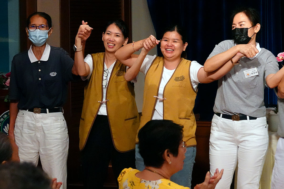 张秀珍开心地与组员们说:“来这里可以学到唱歌、跳舞,平常不会做的事,很开心!还有一些平时没想到的,透过志工的开导教会我们一些生活处事和待人的智慧。只要有上课,我们夫妻没有缺席。”