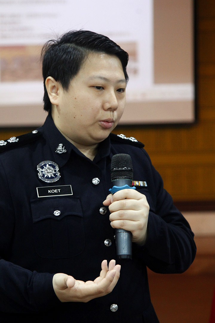 2024年10月7日是长者学堂第四堂课,有同学相互结伴,有夫妻相携,也有孩子陪伴父母而来。特别的是,马六甲商业罪案调查组查案官郭棓芸警长百忙中抽空,在林志君副警监陪同下,莅临慈济马六甲分会,与现场近百人分享如何分辨及提防坠入骗局。