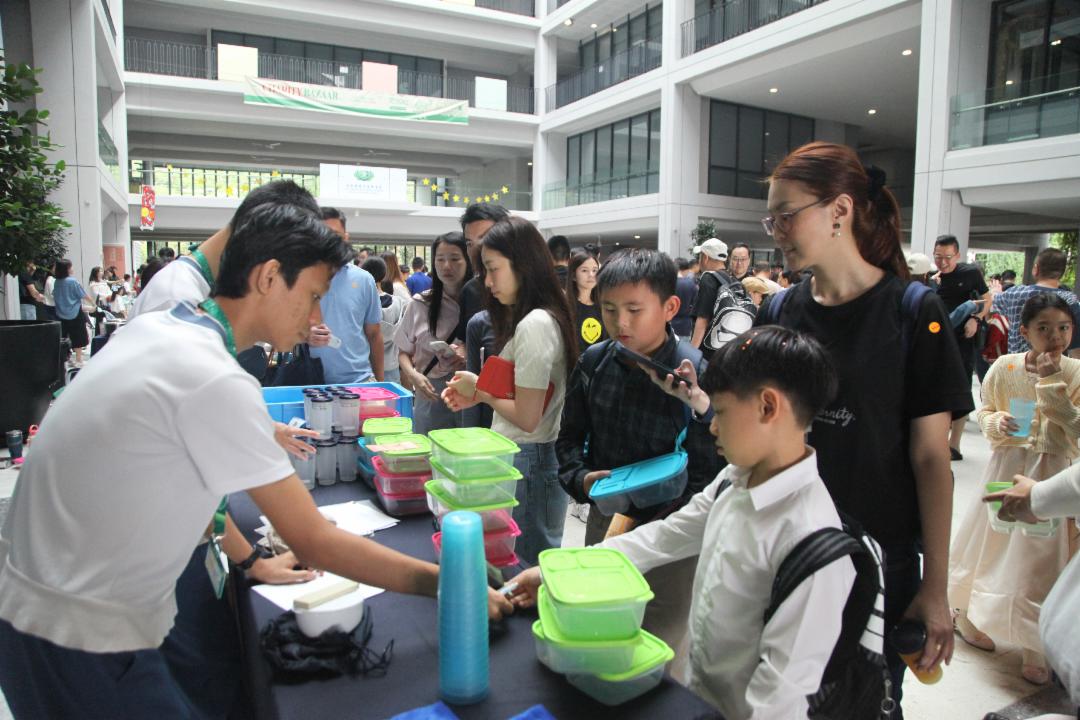 义卖会共设有二十四个摊位,吸引了一百六十四位中学生参与。他们施展看家本领,各显身手,把热情与创意化作一份份温暖的付出。义卖会现场人潮涌动,小学部家长带着孩子一同支持,校园顿时被欢乐与爱心气氛所包围。