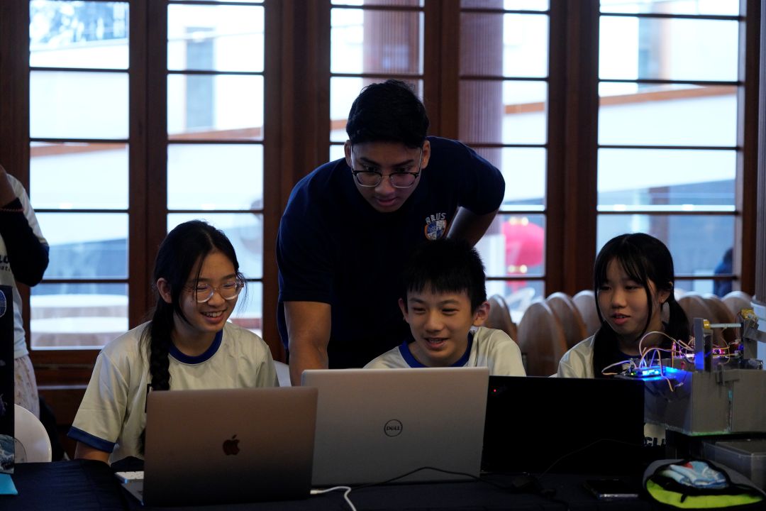 2025年12月20日,吉隆坡慈济静思堂的感恩堂内,排列成U形的桌上摆设的电脑萤幕中,各自显现着一行行程式码(Coding),连接着电路板与回收材料拼成的模型;孩子们或两人、或三人一组围坐讨论,时而低声研究,时而抬头向同伴确认想法。这不是一般的课堂,而是一场STEM(注)创新课程的成果展。
