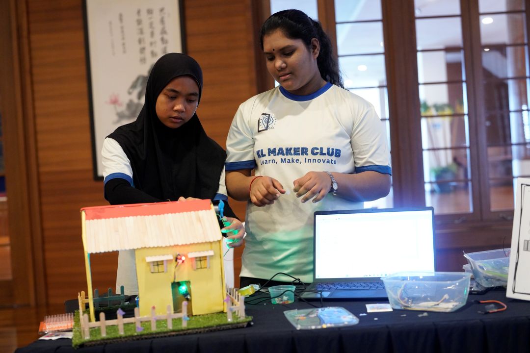 在成果展现场,学生们自信地介绍自己完成的作品。优芭丝哈娜( Yubashana Ambal A/P Subramanian)腼腆却认真地解说一套结合感应器与程式设计的简易安全系统。 “当感应器侦测到物体移动时,便会发出声响,提醒相关人员入屋检查。”她认为,这种系统不只适用于住家,也能延伸至学校、便利商店及公共场所,为环境安全添多一层守护。