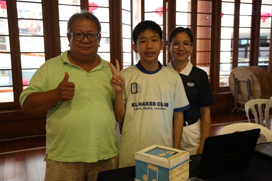 成果展场内的家长席,陆伟良静静地坐着,时而瞄向儿子陆俊康。每当有家长或志工驱前观赏陆俊康的作品时,总是面带微笑的陆俊康,腼腆却不失自信地为大家讲解其成品的设置与功能: “这是一个储蓄音乐盒,当你投入一到三枚硬币时,透过感应器,会依据钱币的数量响起三首不同的音乐。除了培养储蓄帮助人,也可以获得听音乐的奖赏。 ”陆伟良很自然地站在一旁,用手机记录孩子的表现,脸上露出丝丝的欣慰。