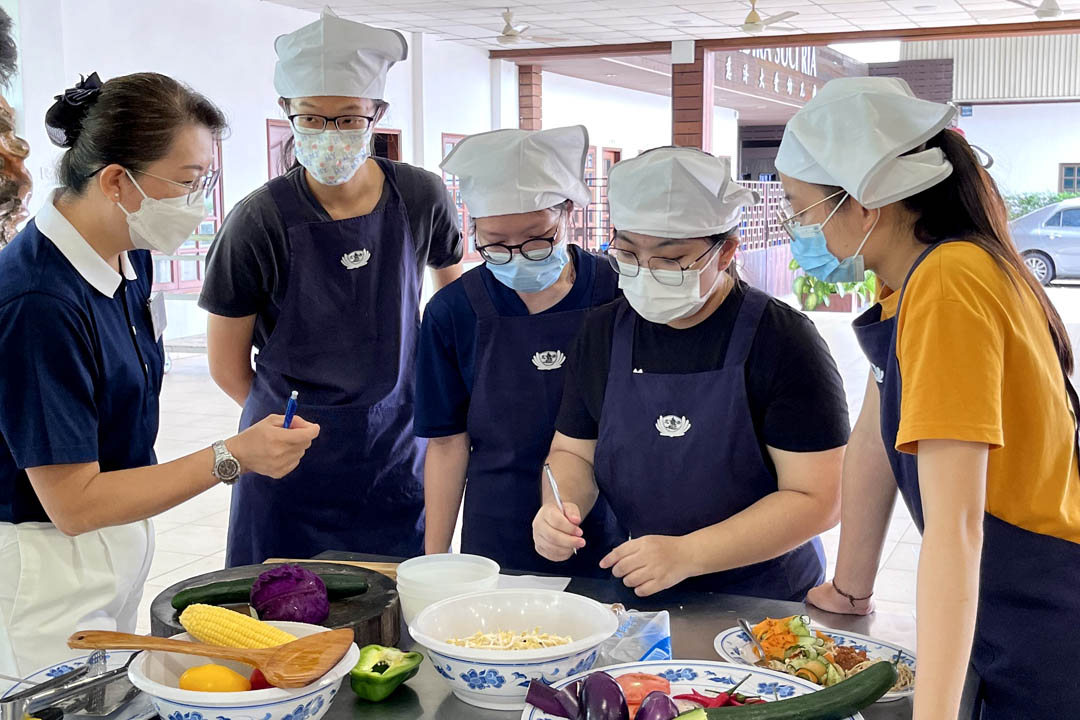 由于此次比赛规定不能使用五辛食材,UTeM米其林组在这方面犯了难,组员们议论纷纷“没有蒜米,不知道应该要怎么开始,平时都是先用葱、蒜等爆香再炒,有点慌张不知道从何下手,也真的是第一次煮纯素料理。”