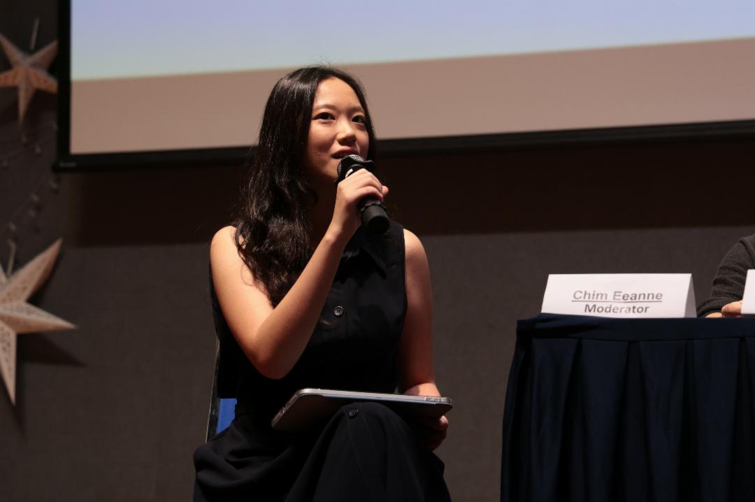 作为座谈主持人的詹渝雯以温暖的语气鼓励学弟妹:“升上大专确实会面临许多未知,但不要害怕。前面总有学长姊引路,你们不是孤单的。”她也提到校友不远千里返校,是为了回馈母校,把关怀与祝福传递下去。