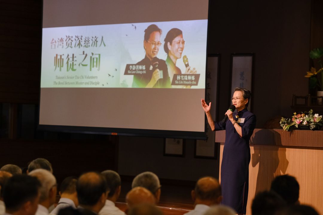 说到这里,李静淇声音哽咽地勉励在场志工不要有退转心,要紧紧跟随上人。她笃定地表示,上人说过:“慈济在这一代立宗,我传我师父的法,今天,我同样把师父的法传给您们(这一代的慈济人)。”上人期待慈济魂要永永远远延续下去。