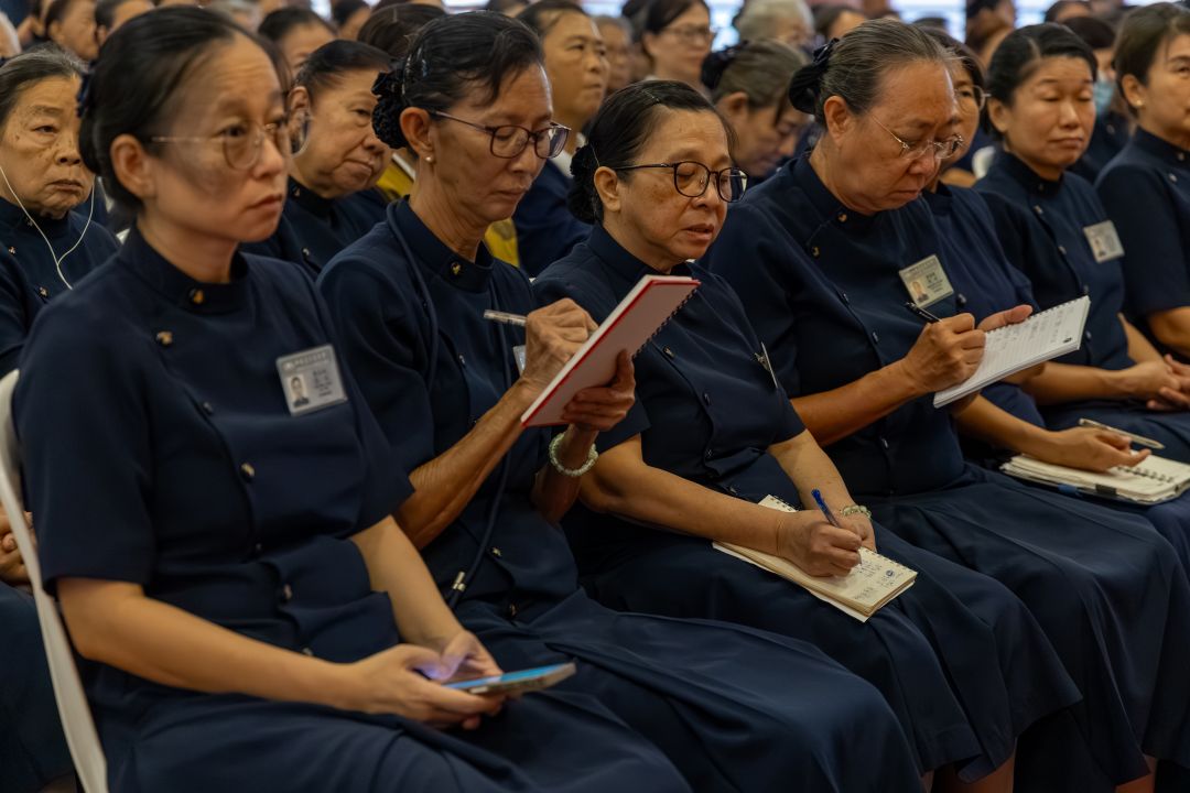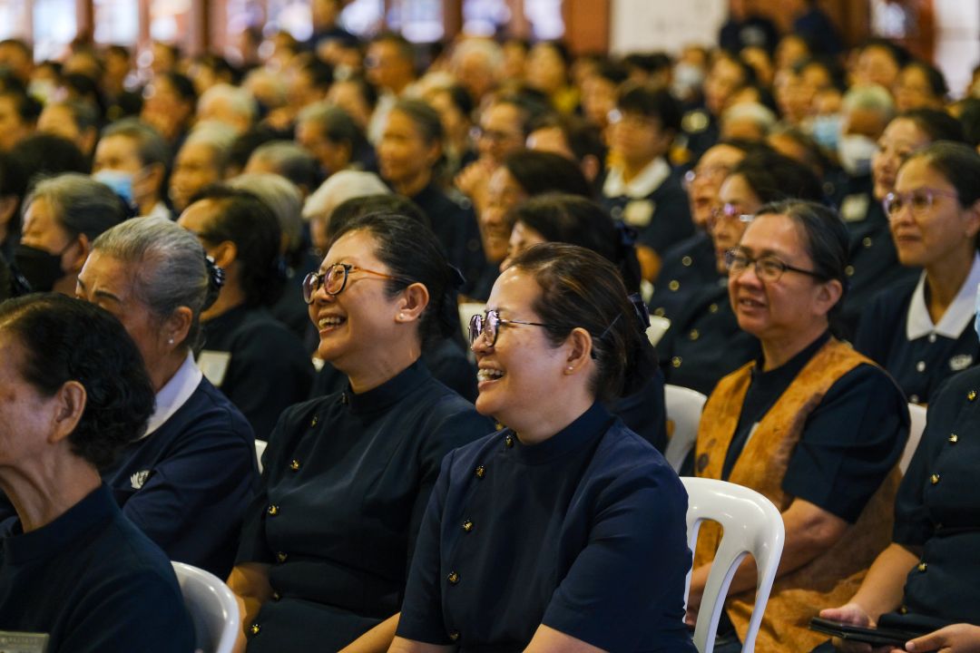 志工们聆听李静淇分享上人的教诲,既蕴含智慧,又带着幽默,让大家忍不住笑开了怀。【摄影:林振胜】