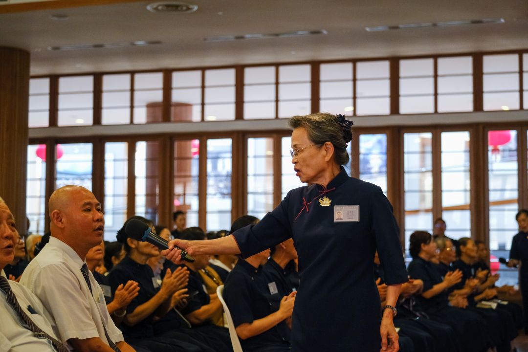 李静淇娓娓道来的不只是往事,更是一路追随上人走来的生命印记。那些关于人、关于事、关于悲心与愿力的故事,让在场志工看见——佛法从来不离人间,也一直在人与人之间流转不息。