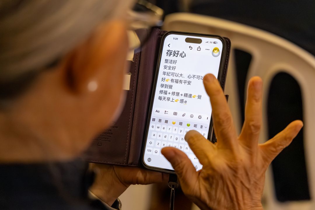 庄荣月用手机及时记录李静淇分享的重点,期许把听到的法与故事与他人分享。 【摄影:叶恩汉】