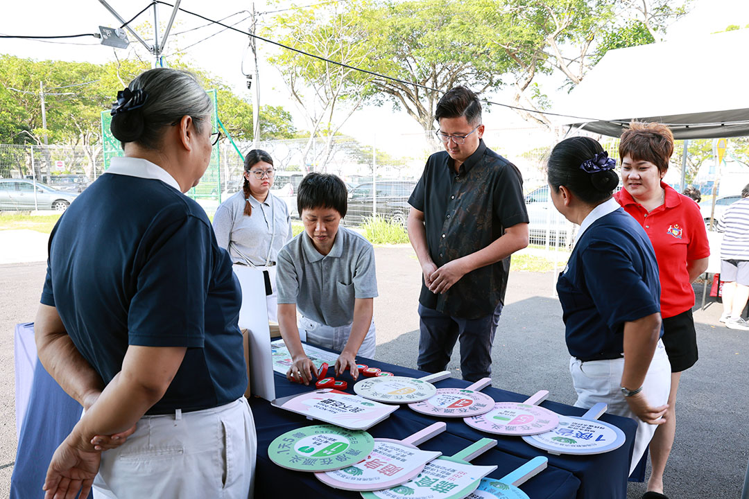 同一时间,柏淡柏兰岭民众会堂内热闹展开世界蔬醒日活动,社区居民与志工齐聚一堂。活动内容丰富多元,包括蔬醒理念分享、环保物义卖、环保互动游戏、蔬食体验,以及健康检查站。
