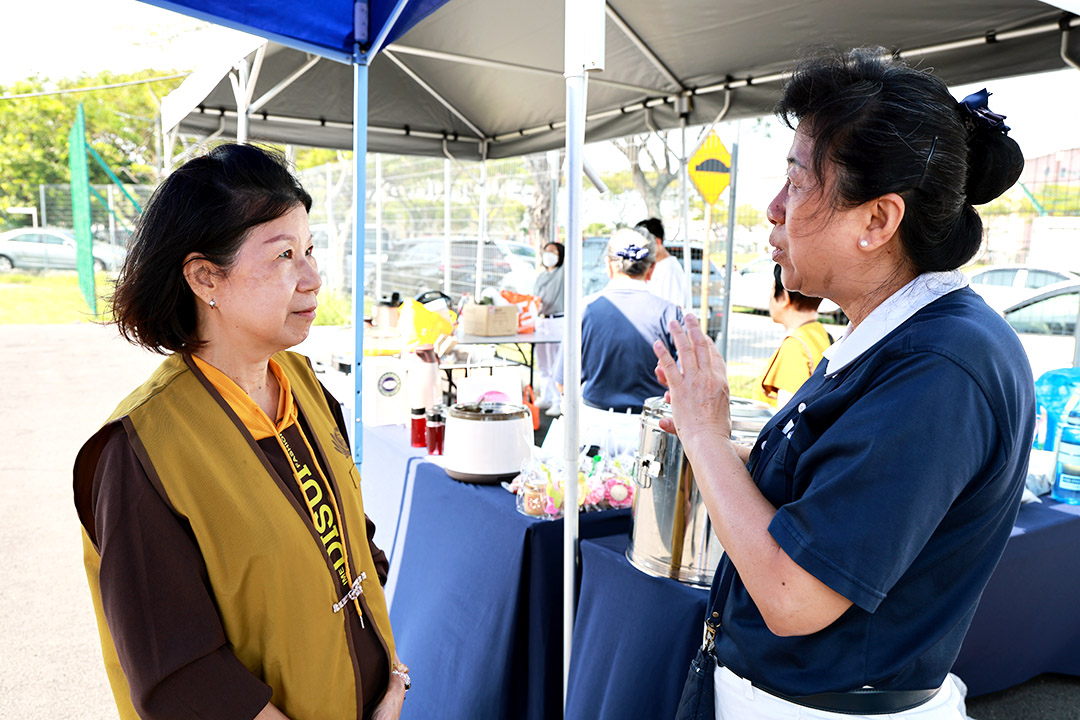 吴云凤和黄玉莲是中学同学,现在又是邻居。他们也是在居民协会的群组中看到活动讯息,因此便相约出席。两人先去做了身体检查,然后再到各个档口闲逛,并选购美味的素食。一致认为活动很有意义,让大家了解蔬食的好处,也以实际行动支持环保。