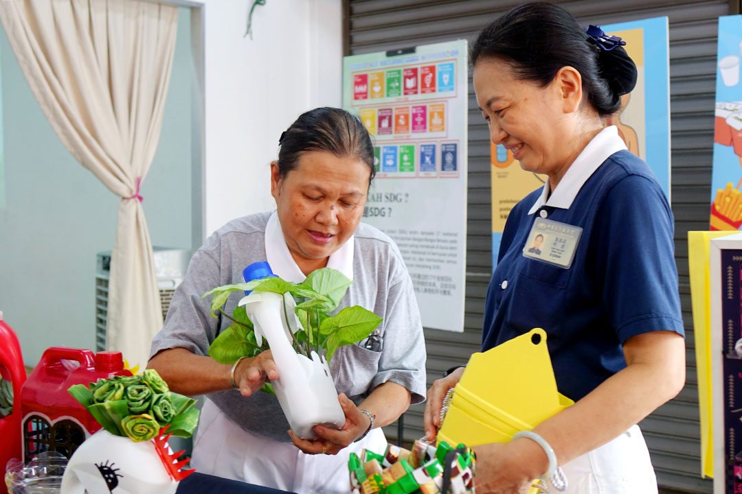 环保教育站汇聚了许多长者,共同撑起环保志业的一片天。八十岁的何金山,每逢环保日便骑着电单车,载着七十八岁的太太符芳未前来付出。无论晴雨,他们从不缺席。