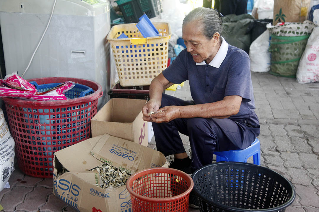 她感恩,2009年因邻居是慈济志工的缘故,邀约她成为捐款会员,不久又再度邀她到马六甲慈济园区参与夜间环保分类。那时六十三岁的她,下班后,晚上七点去做环保,直到十点才心满意足地回家,一周约有四天到环保站报到,从不觉得疲累。反而,由于专注于回收分类,不再胡思乱想,边做边放下烦恼,转换心境,身心也越做越轻松。