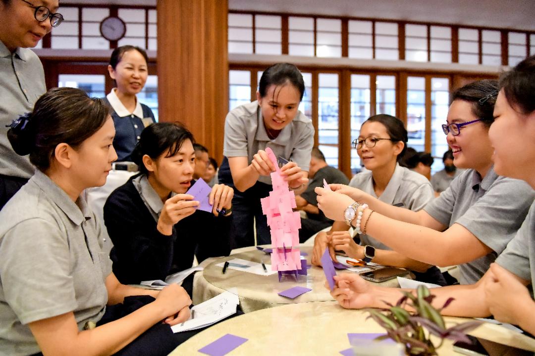 下午的“摩天大楼”挑战,则是目标管理与团队共识的极致展现。获得一百分最高分的组员分享:“带团队的第一件事,是让每个人心安;心安了,人才能定、才能专注。订目标要会测试、会修正;弹性与不执着,往往比一开始的野心更能带来成果。”