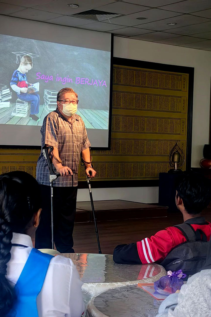 “如果说要辍学,我可能是最有资格的人。”早年因家境贫困,他中学时无法购买一本两毛钱的簿子,只能沿用小学写剩的簿子。级任老师发现后,把他叫去办公室,慈祥地说,每周会将买菜剩下的零钱留给他,还帮忙申请华人会馆的奖助学金来缴付学费,一直默默支持他直到离开。”知恩图报,如今他即便退休,依然以行动回馈社会,活跃于华社,也坚持在课辅班陪孩子们走过难关。