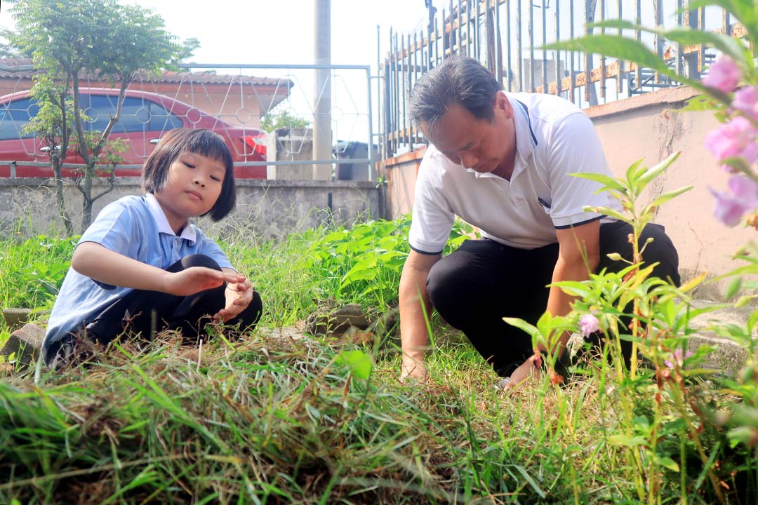 志工陈立蕙(明梨)发现屋旁的小菜园已经长满了杂草。过去梅广圆尚能自己整理,如今因气喘频繁发作、体力不足而无力打理。当志工提议带孩子们帮忙整理时,他一度担心麻烦大家,直到听见志工解释:“这是孩子们学习助人的好机会,能亲自体验帮助别人的快乐。”他才点头答应。